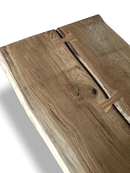 Material blat masă: Lemn masiv de stejar (Calitatea B-C),  cu fisuri si noduri (rustic) cu margini organice